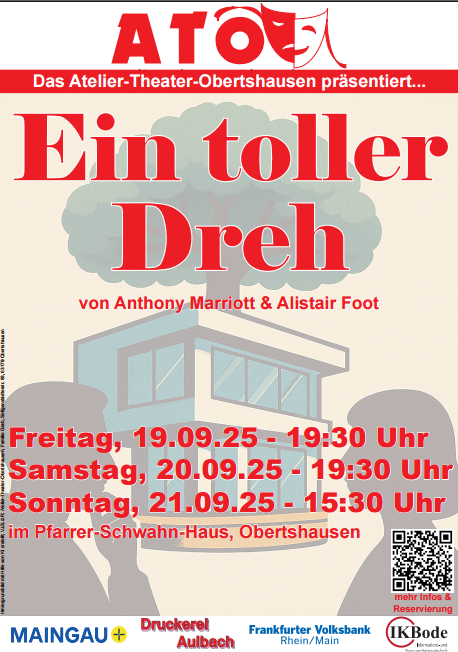 Schwank in 3 Akten Was braucht man, um ein Haus zu verkaufen, das so "besonders" ist, dass es niemand haben will? Richtig! Man zwingt eine Schauspielerin und den Verkaufsleiter dazu, ein Pärchen zu mimen, das schon ewig gemeinsam dort wohnt. Inklusive Fake-Mobiliar, Fake-Fotos und Fake-Kinder. Wenn dann plötzlich viel mehr Leute da sind, als es eigentlich der Fall sein sollte, wird die Sekretärin schnell zum schwedischen Kindermädchen, die Praktikantin unsichtbar und der Verlobte verheiratet mit einer anderen... Da kann doch gar nichts schief gehen! Pfarrer-Schwahn-Haus Pfarrer-Schwahn-Straße 6 63179 Obertshausen-Hausen Freitag - 19.09.2025 um 19:30 Uhr Samstag - 20.09.2025 um 19:30 Uhr Sonntag - 21.09.2025 um 15:30 Uhr Einlass jeweils 1 Stunde vor Beginn Erwachsene: 12,00 € / Schüler&Studenten: 8,00 € Vorverkauf ab 11.08.25 - Büchertreff Obertshausen, Schulstraße 13 - Schreibwaren Hoffmann, Herrnstraße 10 - Familie Grab, Tel: 06104/490449